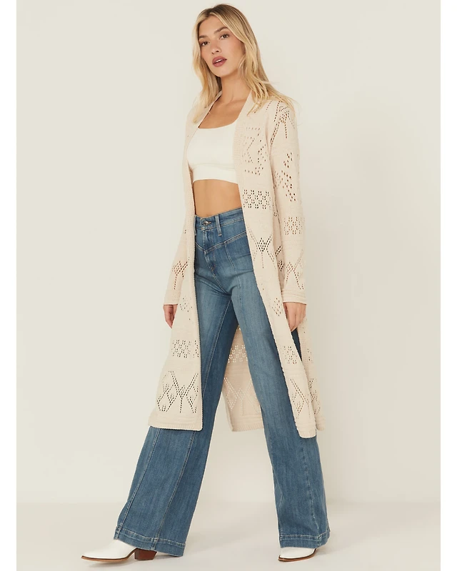 Belldini Plus Pointelle-Stitch Duster Cardigan