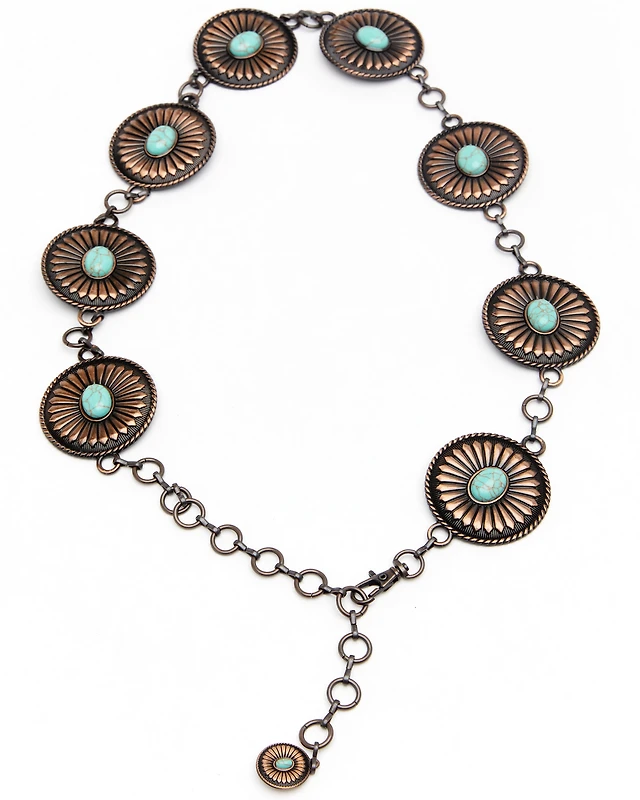 Shyanne Women's Rust Copper Oval Floral Scroll Concho Chain Belt