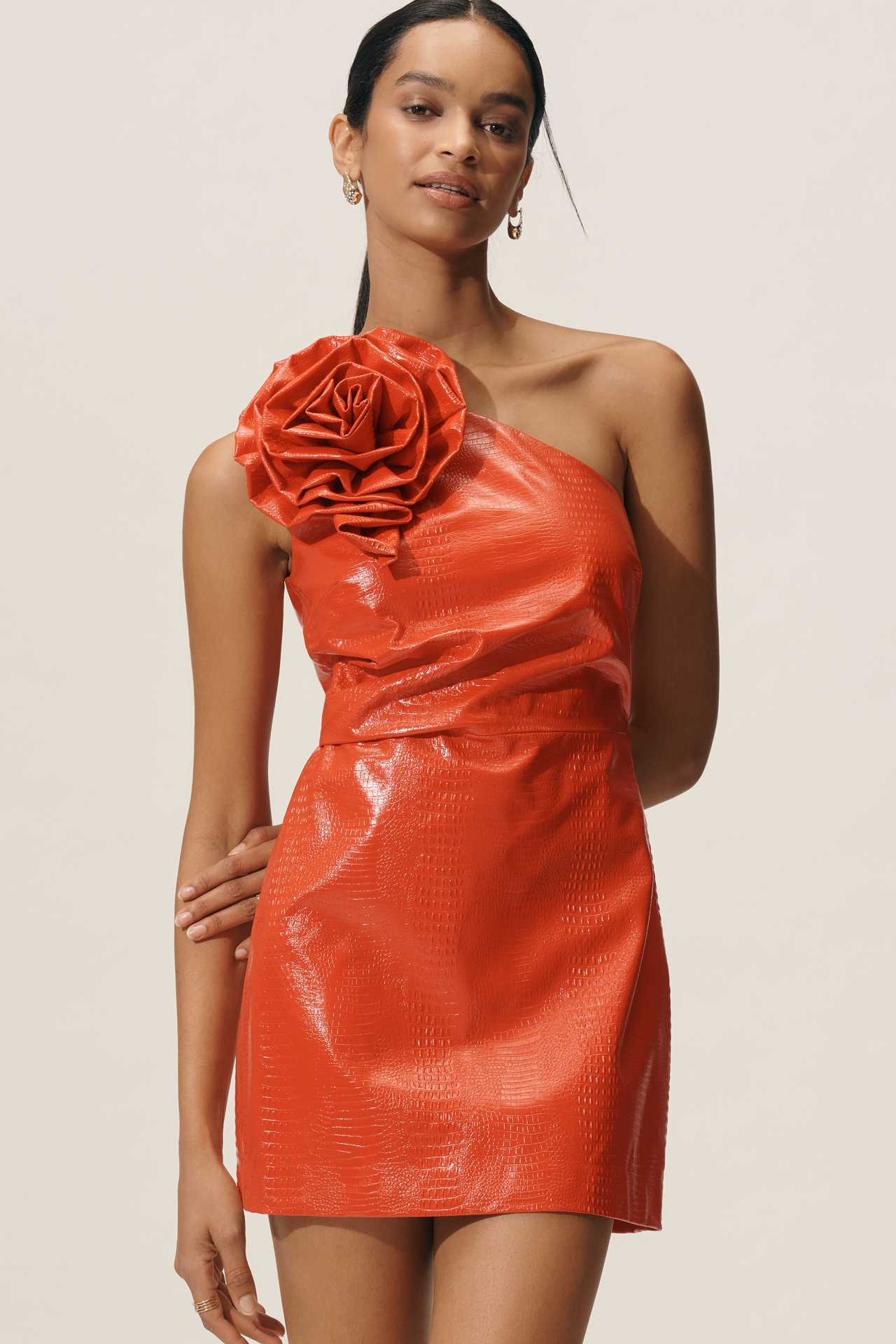 Siempre Faux Leather Rosette Mini Dress in Bloomington, MN
