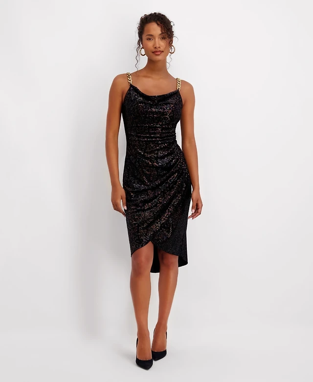 Adelyn Rae Velvet Burnout Cowl Neck Midi Dress