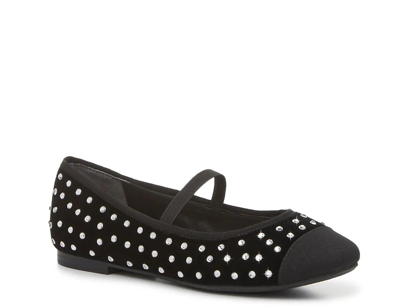 Add a sparkling touch to a simple style in the Sienna ballet flats from Kelly & Katie. Featuring a silhouette inspired by pointe shoes, this pair is crafted with a square toe with a cap design. Embellished with sparkling rhinestones throughout the upper and an elastic Mary Jane strap for a secure fit.