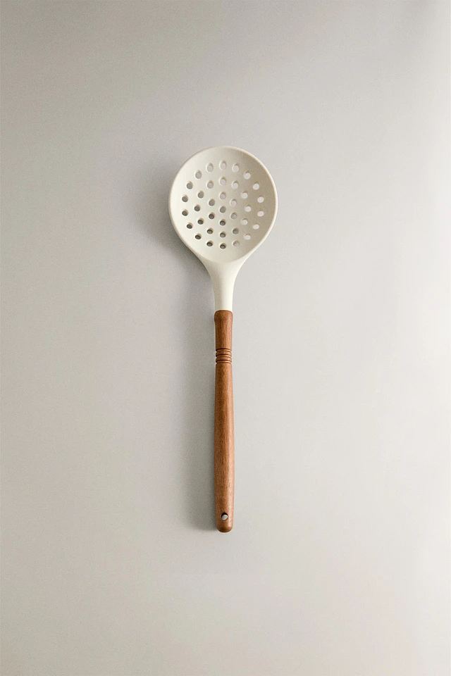 SILICONE AND WOODEN SLOTTED SPOON