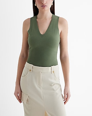 Silky Soft Fitted Tipped V-Neck Polo Sweater Tank