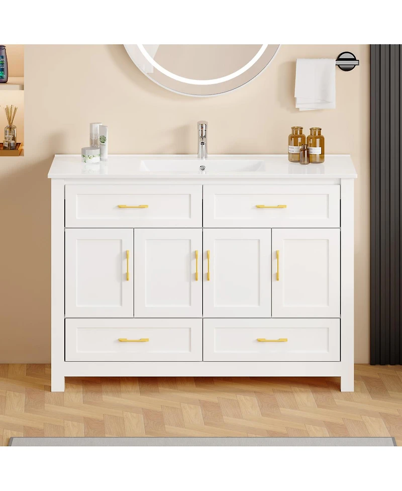 Sillysis 48" Transitional Bathroom Vanity with Ceramic Sink, Soft Close Doors, Mdf Cabinet, Elegant Storage Space for Modern Homes