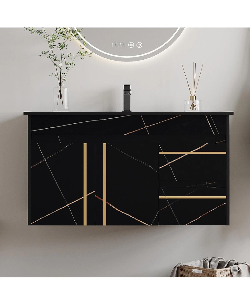Sillysis Floating Bathroom Vanity with Faux Marable Top, Integrated Ceramic Sink, Soft Close Drawers, Luxury Modern