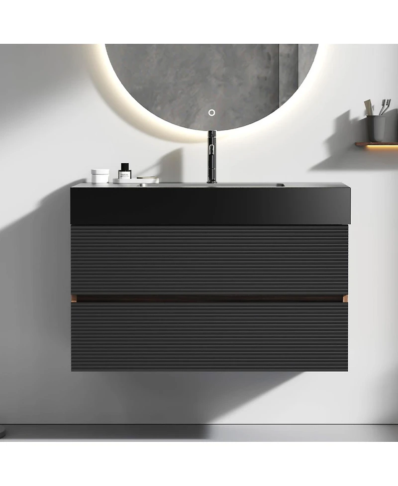 Elevate your bathroom with this sophisticated wall-mounted vanity, thoughtfully designed to blend modern aesthetics with practical functionality. The floating silhouette creates a sense of spaciousness, while the sleek one-piece basin offers easy upkeep and contemporary appeal. Double soft-close drawers ensure quiet, smooth operation and provide generous storage for daily essentials. The handle-free design with a discreet groove enhances safety and adds a refined, minimalist touch. Effortless assembly makes it an ideal update for any modern home, offering a perfect balance of elegance and convenience.