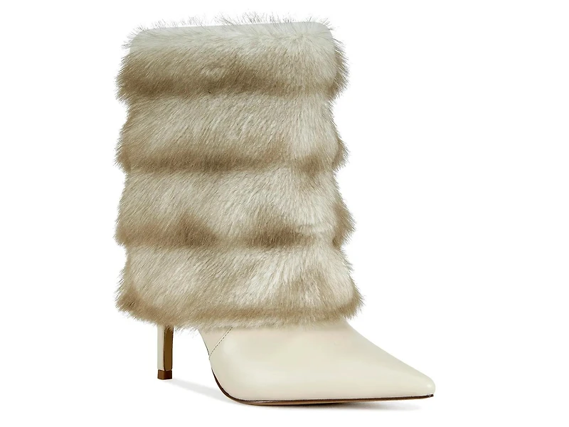 Bring out the fashionista in you with the Azalea Wang Simon bootie. Quilted faux fur shaft adds an attention-grabbing look to this bootie while pointed toe design and covered medium heel lend a chic appeal.