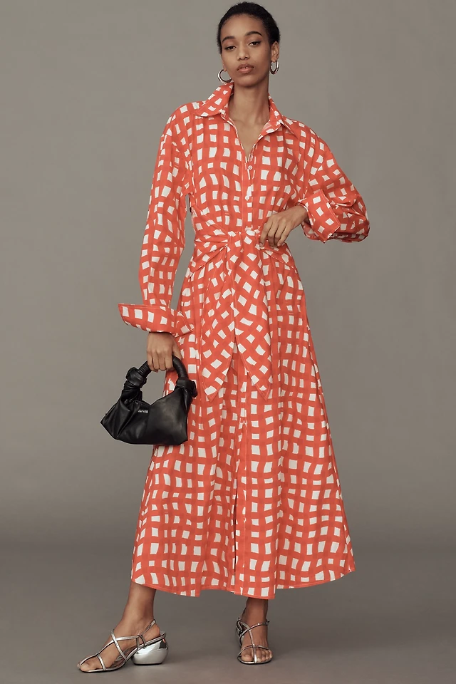 PatBO Long-Sleeve Plunge-Neck Printed Maxi Dress