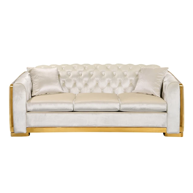 Streamdale Furniture Velvet Chesterfield Sofa with Pillows & Studs, Metal Legs