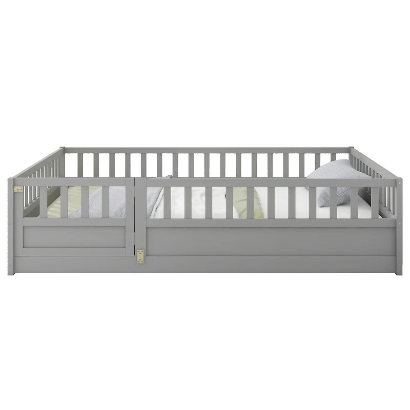 Simplie Fun Full size Floor bed, integral construction with super high security barrier, door, children's floor bed frame, Montessori wooden children'