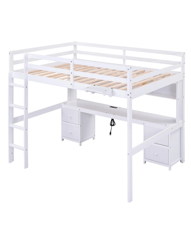 Streamdale Furniture Streamdale Full Size Loft Bed with Desk, Drawers & Shelves, White