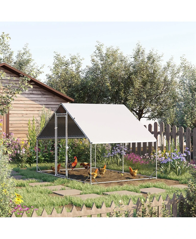 Simplie Fun Metal Chicken Coop Run with Cover, Walk-In Outdoor Poultry Pen for Rabbits, Ducks, Large Hen House for Yard, 10' x 6.5' x 6.5', Silver in Bloomington, MN