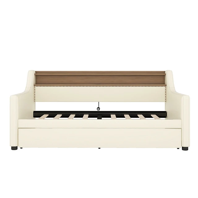 Twin Size Daybed with Pop-up Trundle Charging Station & Led Lights for Living Room