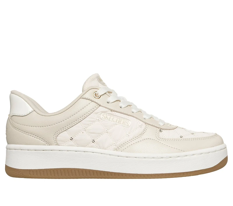 Cozy up to throwback style and modern comfort with Skechers Hands Free Slip-ins®: Sport Court 92 - Cozy Fit® Enchanting Glamour. Designed with our Heel Pillow®, this sporty fashion slip-on features a rhinestone-embellished Cozy Fit® and synthetic overlay upper, adjustable laces, and a Skechers Air-Cooled Memory Foam® insole to cushion every step.