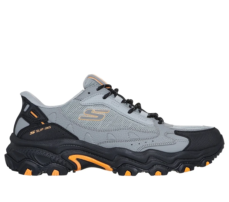 Hit the trails in athletic comfort with Skechers Hands Free Slip-ins®: Stamina - Crestmont Ridge All-Terrrain. Designed with our Heel Pillow®, this outdoor hiking slip-on features a mesh and duraleather overlay upper with adjustable laces and a cushioned Skechers Memory Foam™ insole.