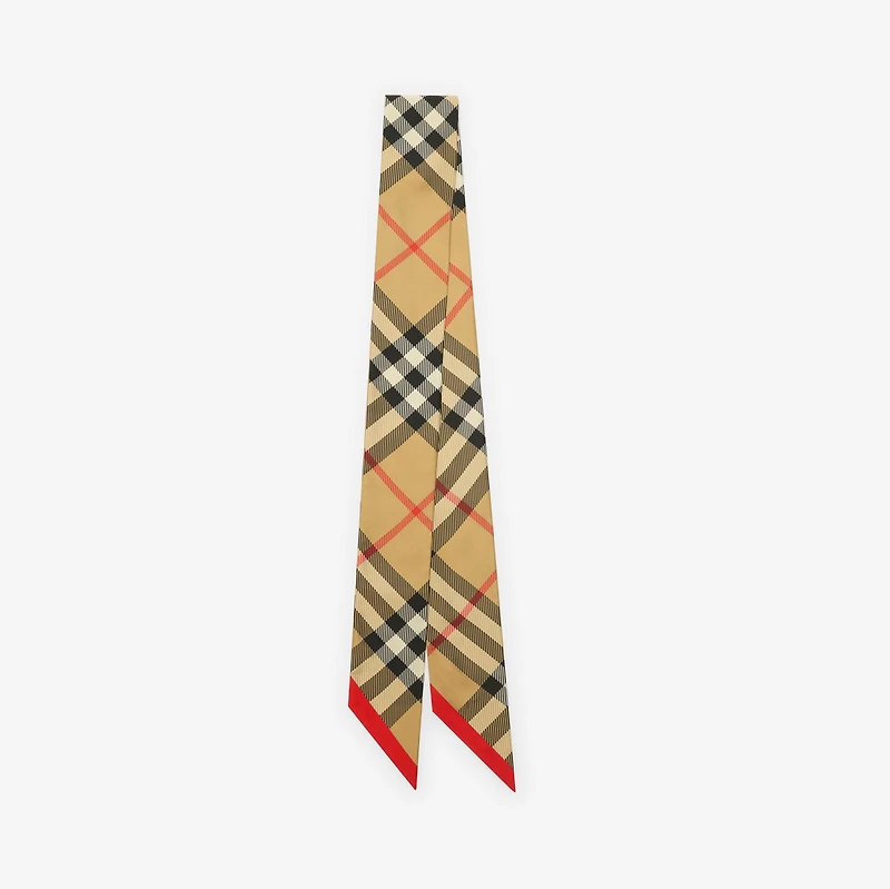 A skinny scarf made in Italy from silk twill, printed with the Burberry Check. Tapered tips