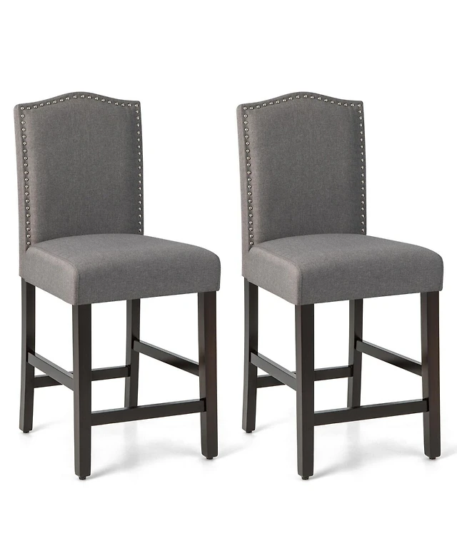 Skonyon 25 Inch Set of 2 Upholstered Counter Height Bar Stools with Rubber Wood Legs
