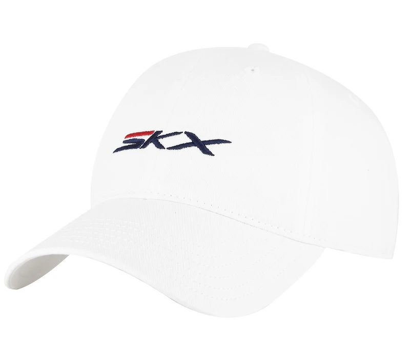 Top off your look in Skechers SKX® Heritage Baseball Hat. This monochromatic cotton baseball cap features a flexible bill, adjustable snap back closure, and an embroidered SKX® logo on the front.