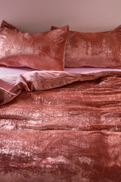 Give your space a decadently dreamy look with this duvet cover made from luxurious crushed velvet. With a soft, crushed velvet along the top panel, backed with solid cotton sheeting that’s crisp against skin. Pair it with our Skye Velvet Sham Set for a coordinated set. Available exclusively at Urban Outfitters.