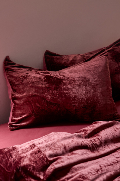 Give your space a decadently dreamy look with these pillow shams made from luxurious crushed velvet. With a soft, crushed velvet along the top panel, backed with solid cotton sheeting that’s crisp against skin. Pair them with our Skye Velvet Duvet Cover for a coordinated bedding set. Available exclusively at Urban Outfitters.