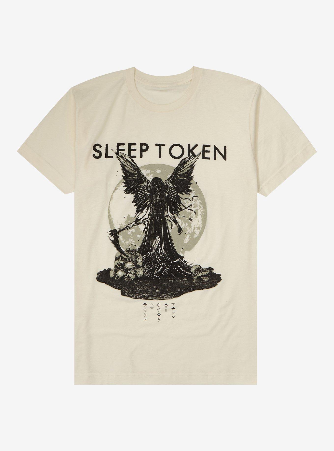 You've got my body, flesh and bone The sky above, the Earth below Obsessed with Sleep Token? Grab this badass tee to let everybody know. It shows a winged reaper standing next to a pile of skulls.