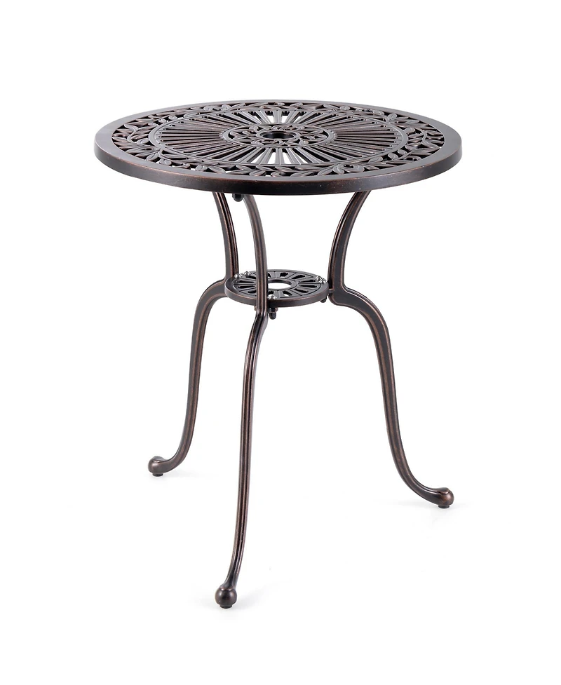 Slickblue 24 Inch Round Cast Aluminum Table Patio Dining Bistro Table with 2 Inch Umbrella Hole-Copper