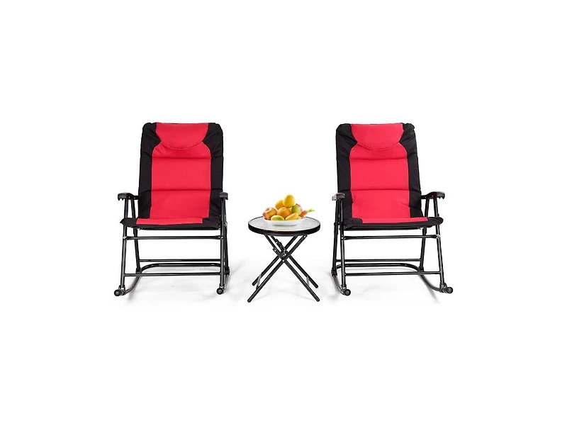 Slickblue 3 Pcs Outdoor Folding Rocking Chair Table Set with Cushion