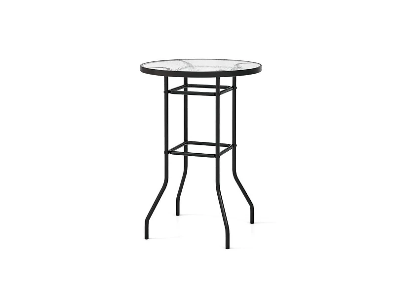 Durable Tempered Glass: This 38"" outdoor bistro table features a sturdy tempered glass tabletop that is built to withstand outdoor conditions. Plus, it is fitted with protective silicon pads between the metal frame and the glass top for safe use.