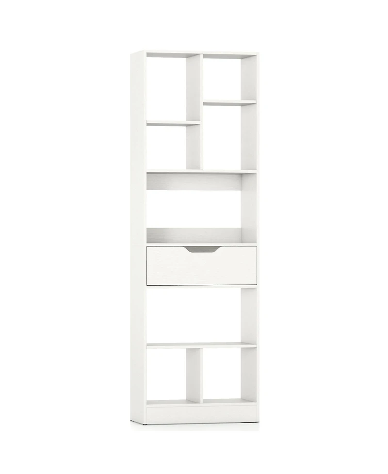Slickblue 61 Inch Bookcase with Drawer and 8 Storage Compartments