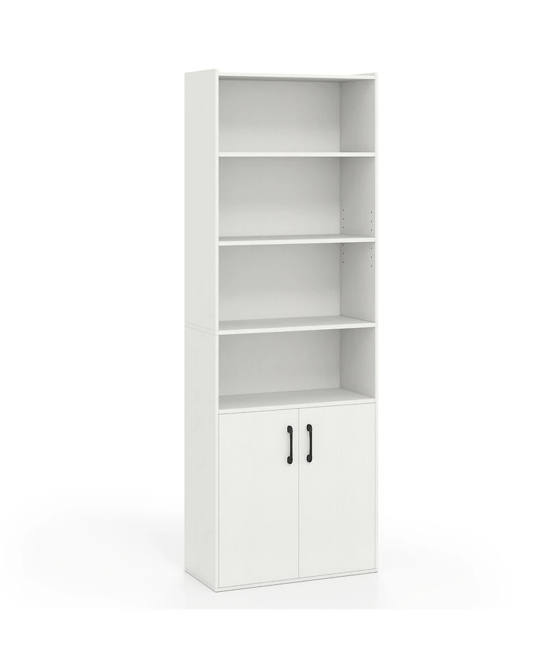 70-Inch 6-Tier Bookcase with Adjustable Shelves and 2-Door Cabinet Organize your books, decor, and essentials with this 70-inch tall 6-tier bookcase featuring adjustable shelves and a convenient 2-door cabinet. The adjustable shelving allows you to customize the space to accommodate items of various heights, from books to decorative pieces, while the lower cabinet provides hidden storage for a tidy, clutter-free look. Crafted with a sturdy frame for durability and stability, this bookcase is perfect for living rooms, bedrooms, or home offices. Combining practical functionality with a clean, modern design, it offers versatile storage and display options to suit any space.
