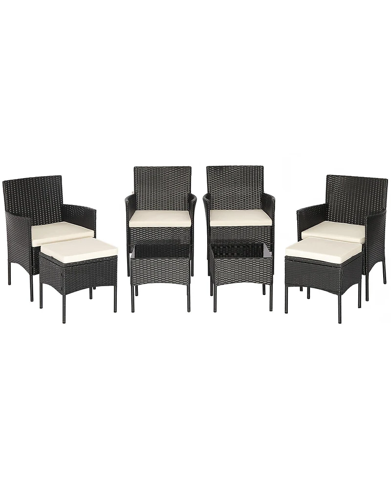 Slickblue 8 Pieces Patio Wicker Conversation Set with 2 Coffee Tables and 2 Ottomans