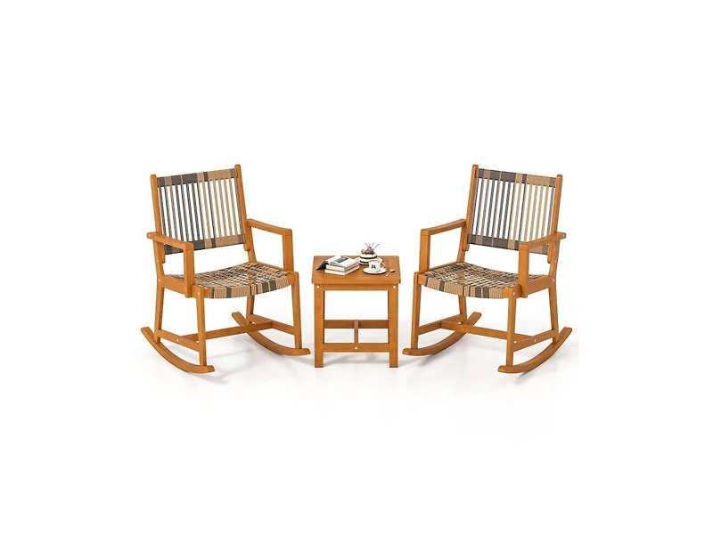 Slickblue Acacia Wood 3-Piece Patio Rocking Bistro Set