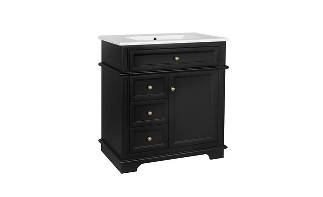 Streamdale 30" Bathroom Vanity with Sink, One Door with Shelf and Three Drawers, Soft Close Door, Black