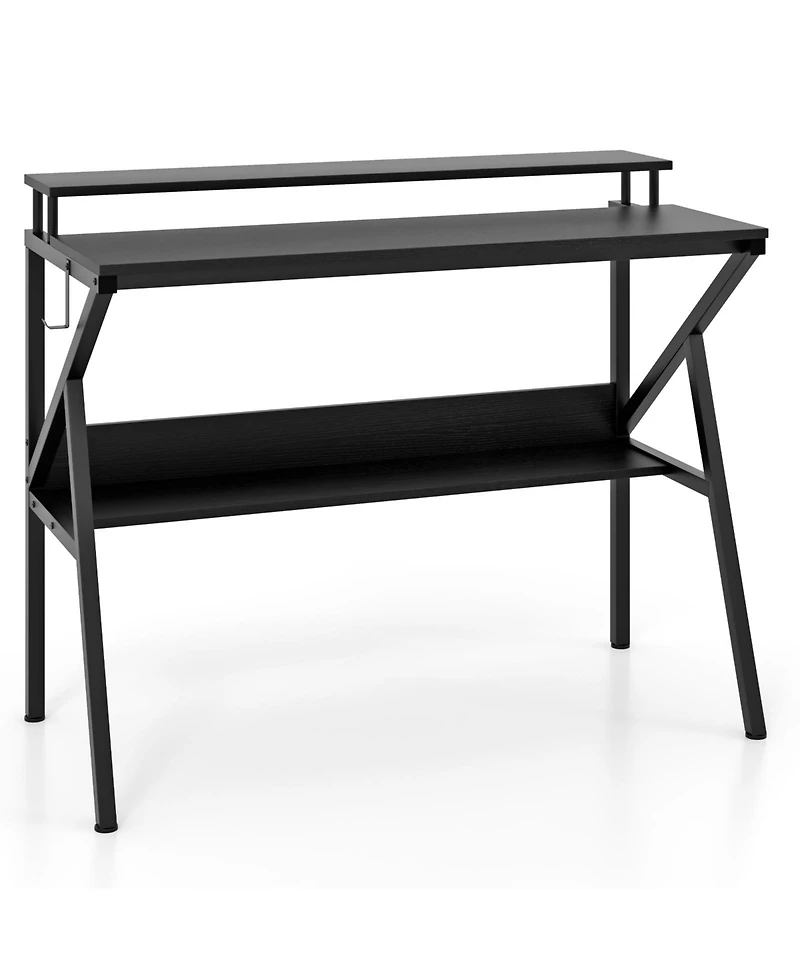 This space-saving computer desk is designed to maximize functionality in compact areas while providing a comfortable and organized workspace. It features a raised monitor stand that helps position your screen at an ergonomic viewing height, reducing neck and eye strain. The extra storage shelf offers convenient space for books, office supplies, or decorative items, keeping your essentials within easy reach. The sturdy tabletop provides ample room for a laptop, monitor, and daily work or study needs. Ideal for home offices, dorm rooms, or small spaces, this desk combines practicality, organization, and a clean modern design.