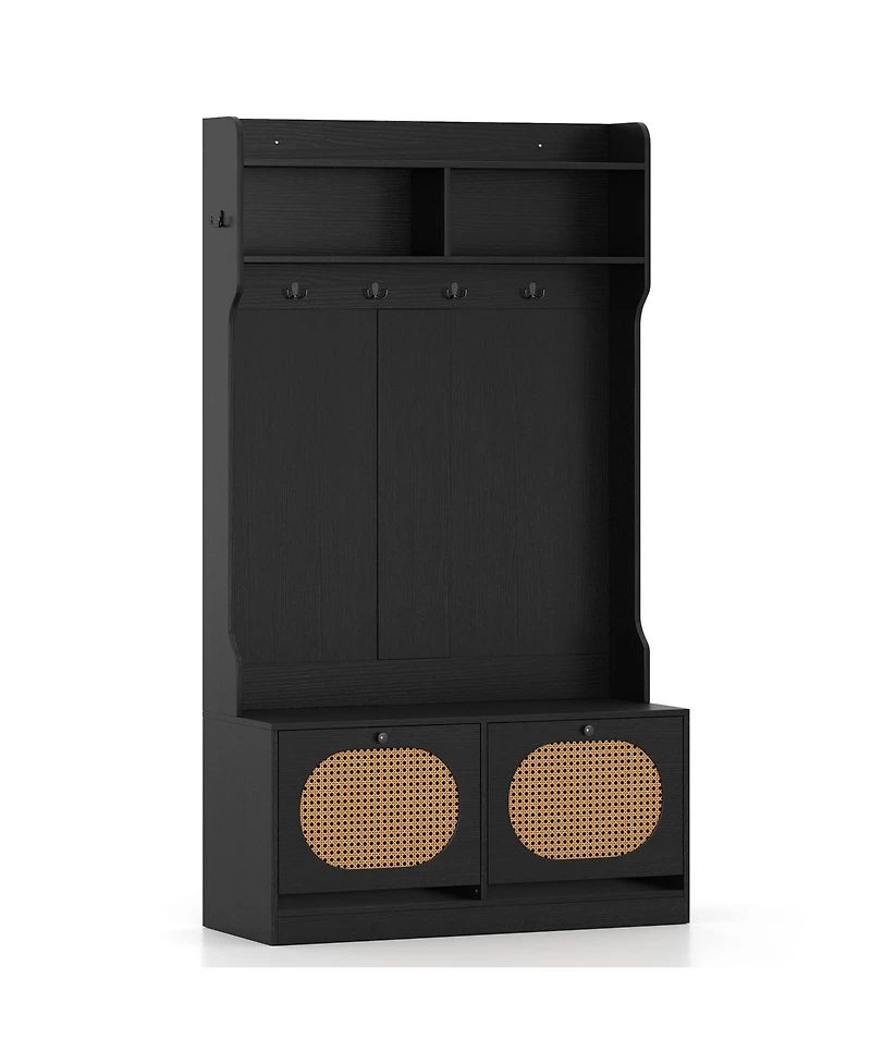 Slickblue Entryway 4-in-1 Hall Tree with Coat Rack and Flip Drawers