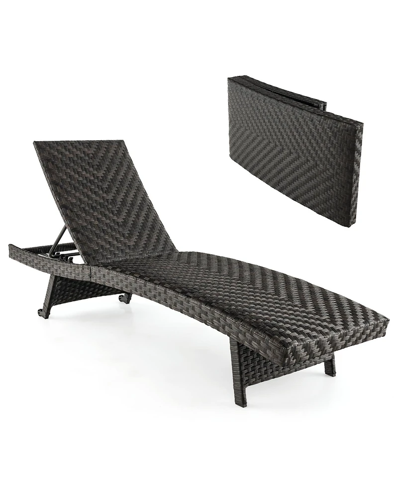Slickblue Folding Padded Rattan Patio Chaise Lounge with Adjustable Backrest and Quick Dry Foam