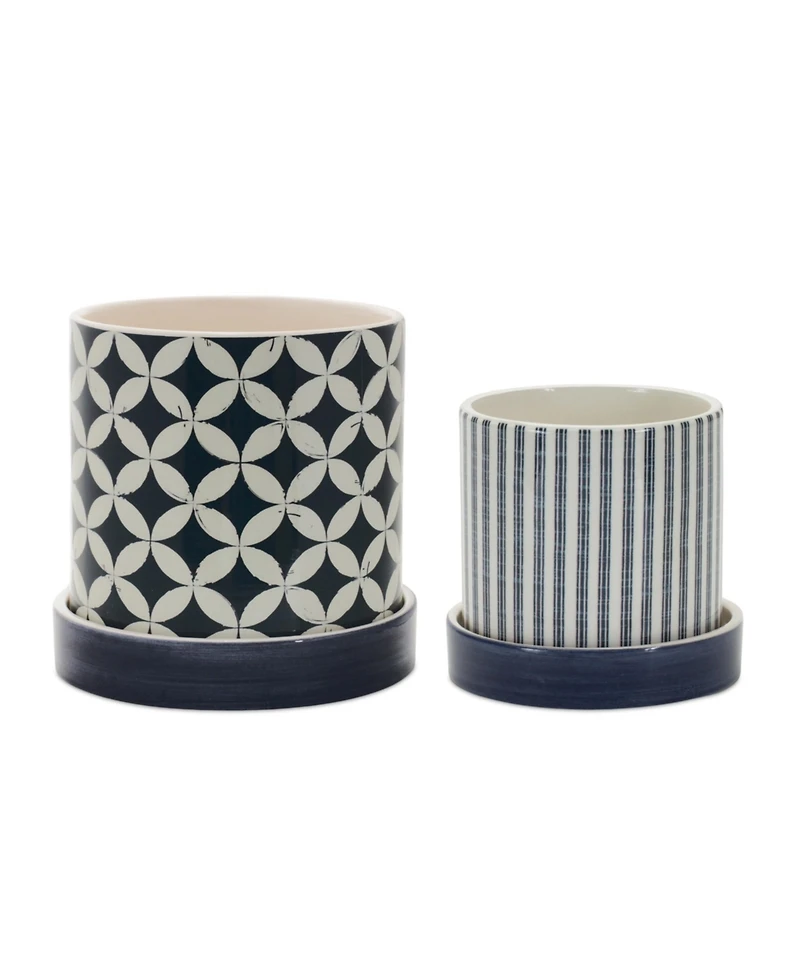 Slickblue Geometric Pattern Planter With Plate (Set of 2)Slickblue Geometric Pattern Planter With Plate (Set of 2)Slickblue Geometric Pattern Planter With Plate (Set of 2)