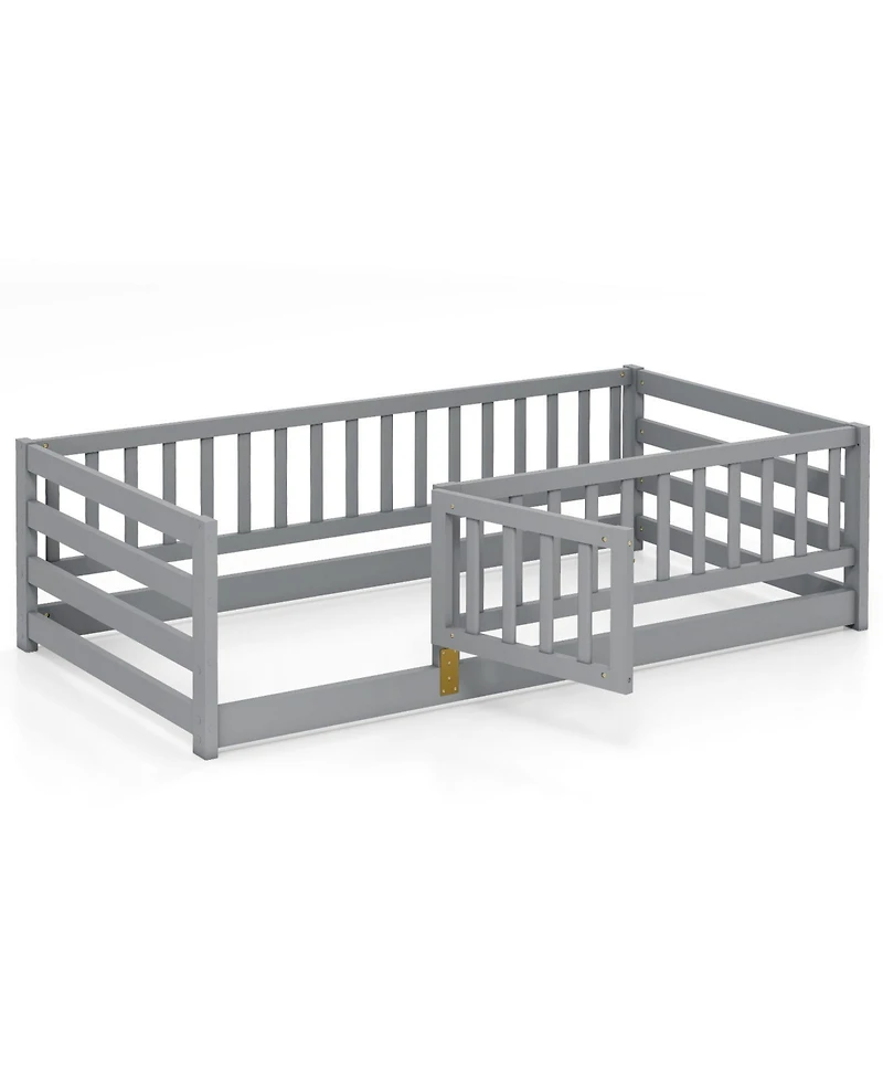 Slickblue Kids Twin Floor Bed with Safety Fence and Playhouse Door - 41