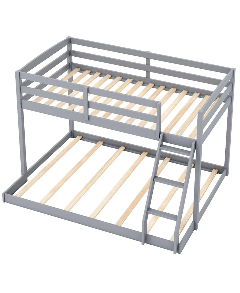 Slickblue Low Floor Twin Over Full Bunk Bed Frame for Kids, Space Saving Bedroom Solution