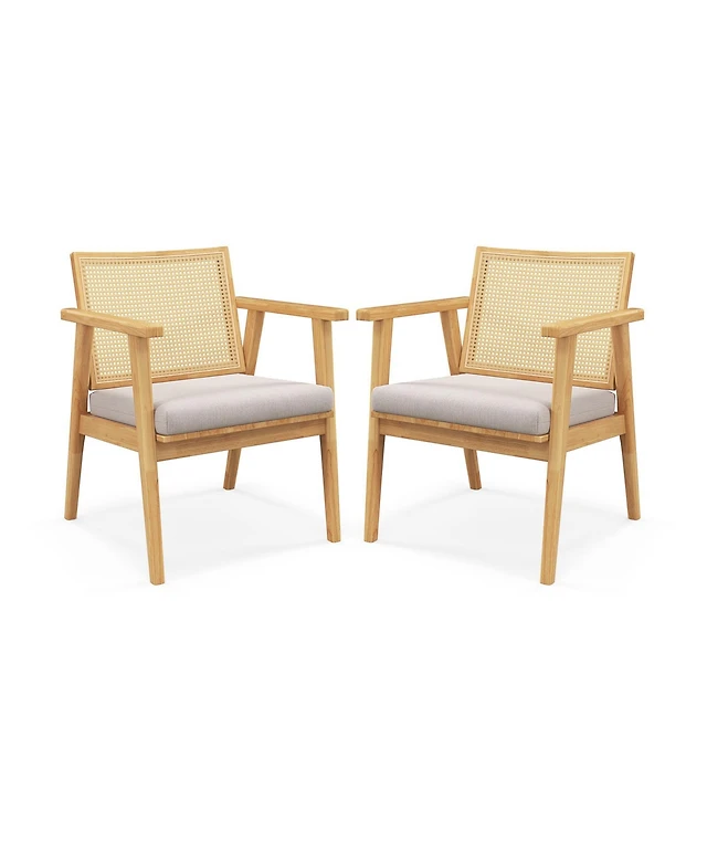Slickblue Mid Century Modern Accent Chairs Set of 2 with Breathable Rattan Back-Natural