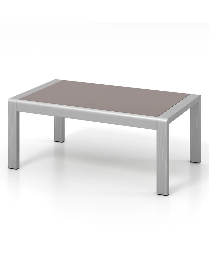 Slickblue Outdoor Rectangle Coffee Table with Tempered Glass Tabletop for Backyard Poolside-Grey