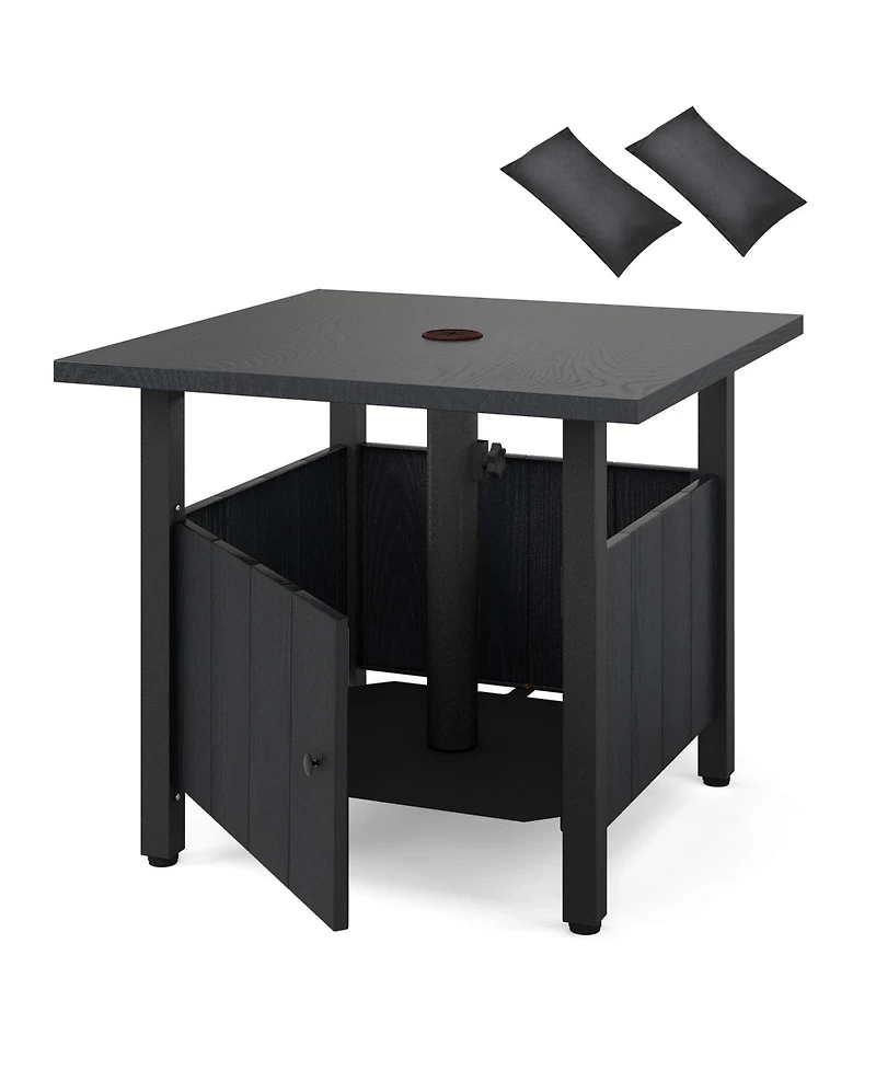Slickblue Outdoor Umbrella Table Base Stand with Side Table and Umbrella Hole