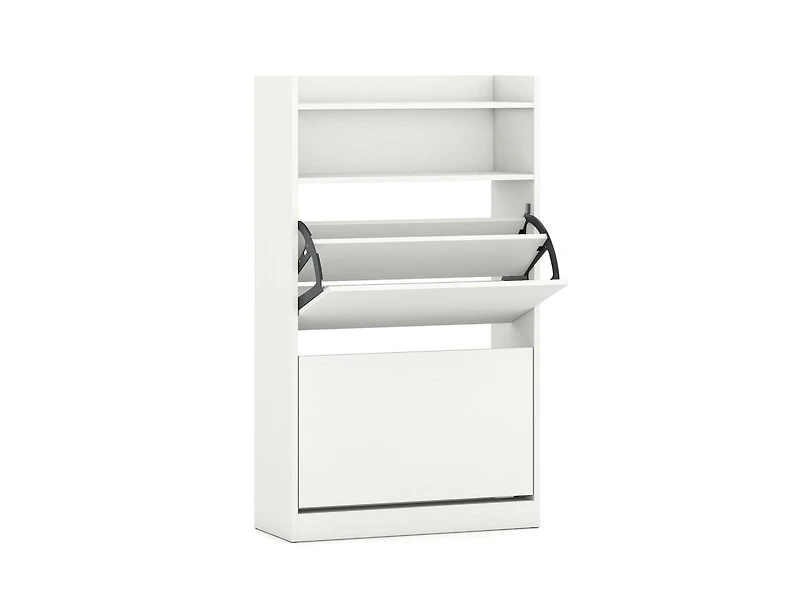Shoe Storage Cabinet – Hidden Shoe Rack with 2 Flip Drawers and Adjustable Shelves Keep your entryway or closet organized with this stylish shoe storage cabinet featuring two flip-down drawers for discreet, clutter-free shoe storage. The adjustable and removable shelves allow you to customize the space to accommodate different shoe sizes, from sneakers to boots. Its sleek, space-saving design conceals footwear while providing easy access, helping maintain a tidy and streamlined look. Crafted for stability and everyday use, this cabinet combines functionality with a modern aesthetic, making it an ideal solution for bedrooms, hallways, or entryways.