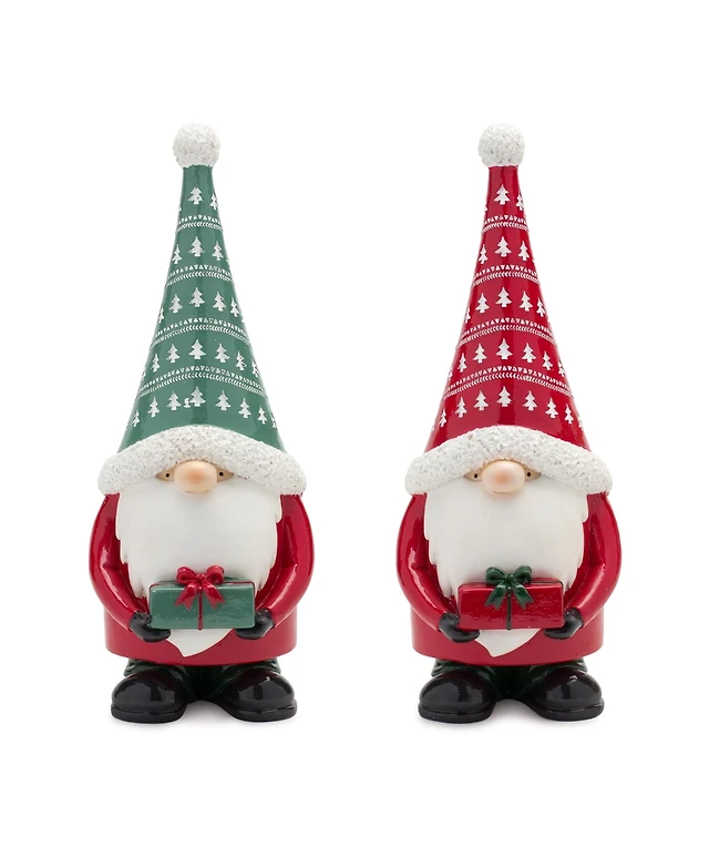 Slickblue Stone Holiday Gnome Figurine with Present Accent (Set of 2)