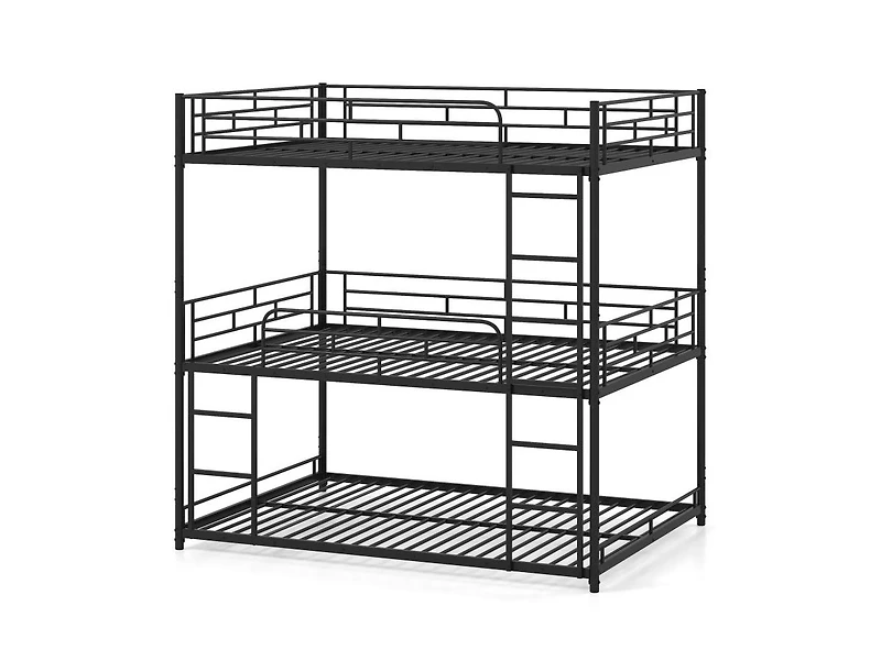 Slickblue Triple Metal Bunk Bed with Dual Ladders and Safety Rails - 56