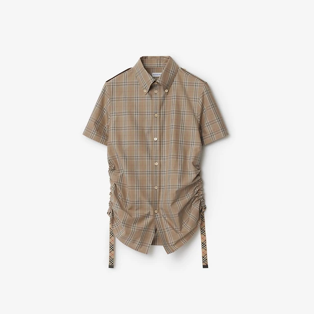 Regular Fit Check Cotton Shirt in Almond beige - Women | Burberry® Official