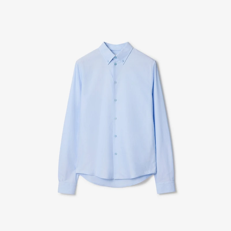 A classic cotton Oxford shirt tailored to a slim fit. The style is embroidered with a tonal Equestrian Knight Design and lined with signature Burberry Check taping at the placket and cuffs. Button closure Button-down collar Single-button cuffs Curved hem Embroidered Equestrian Knight Design at chest