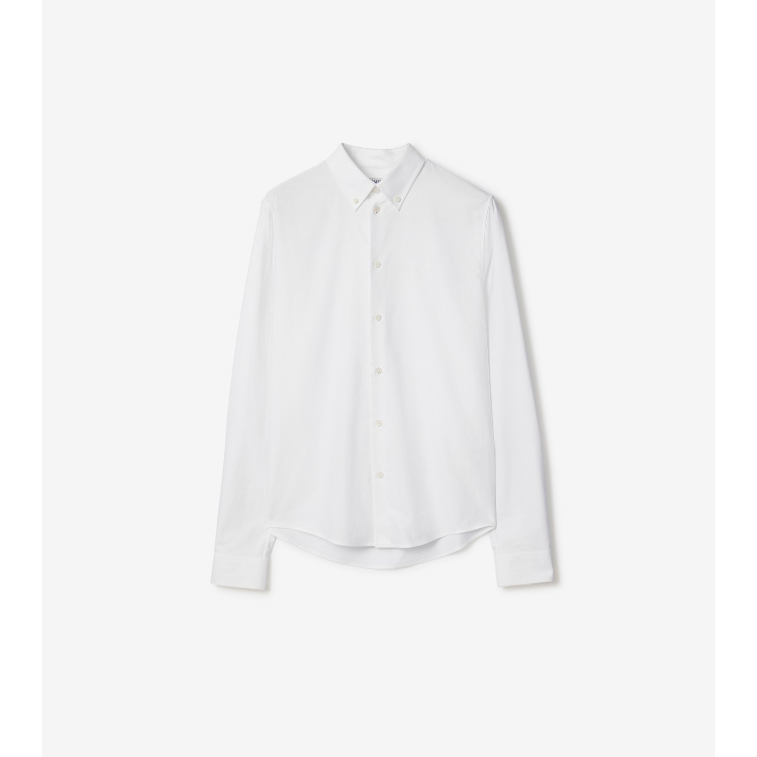 A classic cotton Oxford shirt tailored to a slim fit. The style is embroidered with a tonal Equestrian Knight Design and lined with signature Burberry Check taping at the placket and cuffs. Button closure Button-down collar Single-button cuffs Curved hem Embroidered Equestrian Knight Design at chest