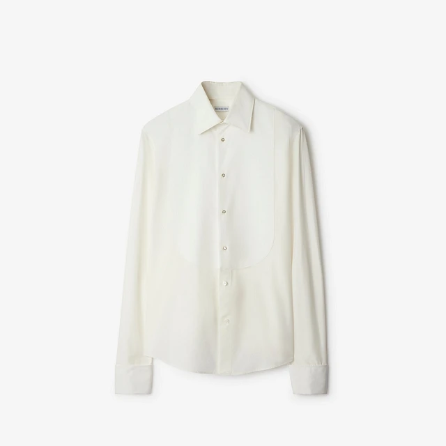 Slim Fit Cotton Silk Tuxedo Shirt in Natural white - Men | Burberry® Official