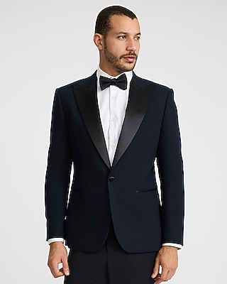 Slim Navy Herringbone Wool-Blend Tuxedo Jacket in Bloomington, MN